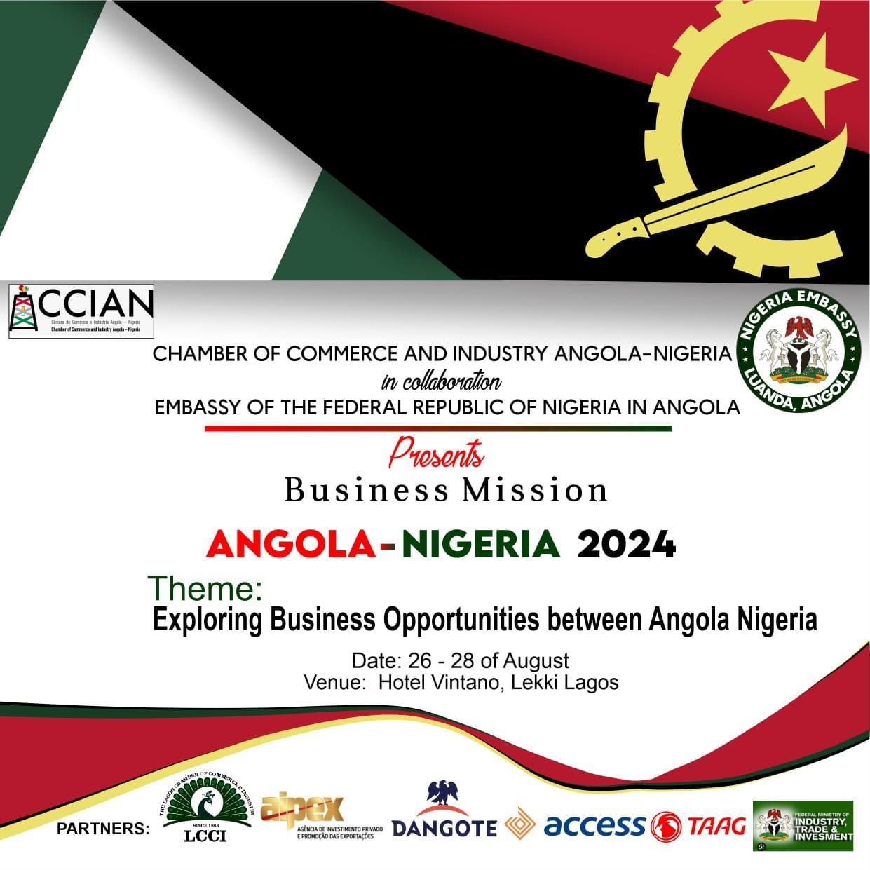 From August 26th to 29th, Lagos will be the center of great opportunities! At the Vintano Hotel, Lekki Nigeria, business leaders, investors, and visionaries will gather to shape the future of business in Africa. We are ready for the future. Are you? Contacts +244 946 93 93 43 (WhatsApp) or 946 93 93 63, Email: geral@ccian.ao